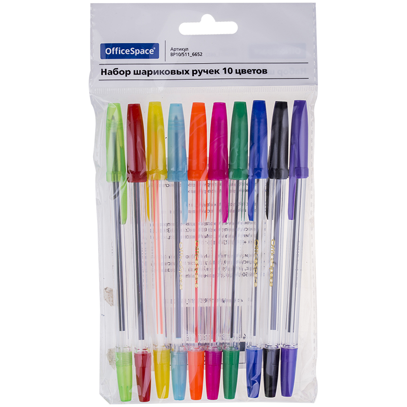 Набор шариковых ручек OfficeSpace 10шт, 10цв, 1мм 220112