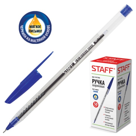 Ручка шариковая масляная 20 штук STAFF эконом, синяя 0,7 мм