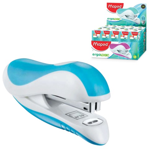 Степлер MAPED "Ergologic", №10, на 15 листов, с контейнером для скоб, ассорти, 352211
