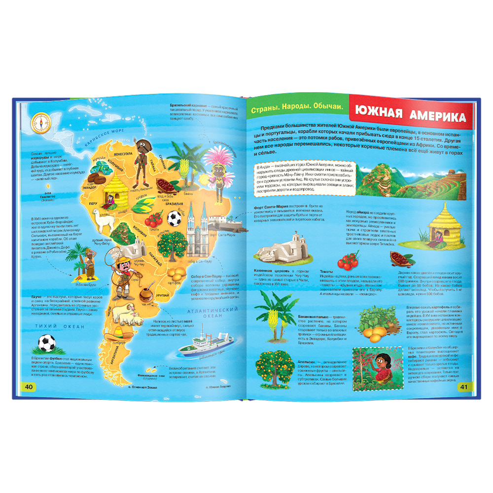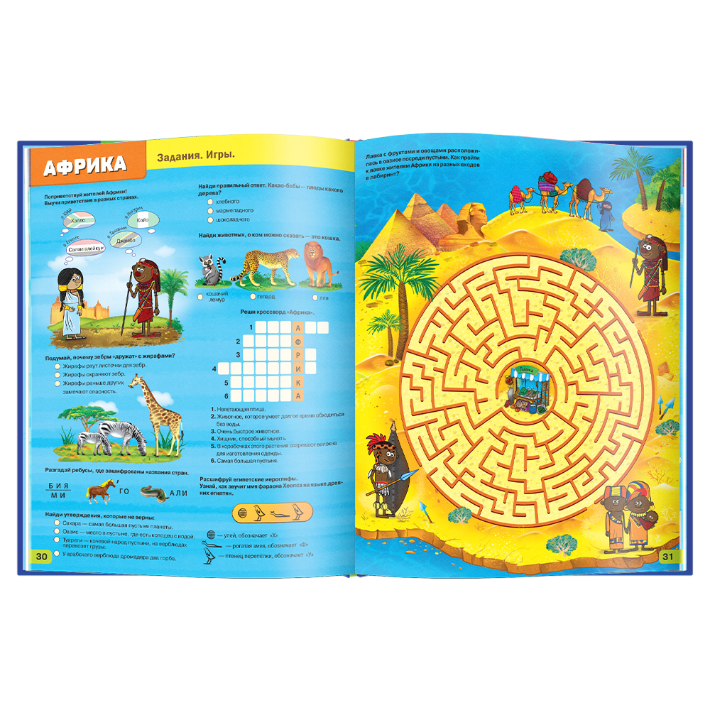 Наглядная энциклопедия может служить путеводителем в путешествии по материкам. Дети смогут побывать в далекой Австралии и Океании, в знойных пустынях Африки, в джунглях Южной Америки и во многих других загадочных и неизвестных местах. В Атлас Мира включены карты, которые помогут юным читателям лучше представить, как устроена планета Земля. Красочные иллюстрации и короткие занимательные факты познакомят детей с окружающим миром нашей планеты. В занимательных головоломках скрыта необычная информация - так хочется разгадать и узнать много нового и интересного!