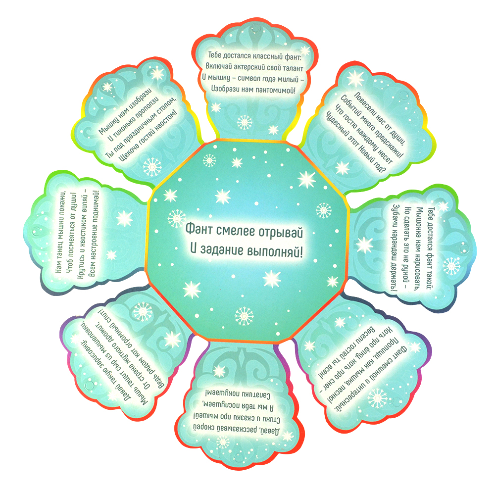 Это украшение можно использовать для Новогодних конкурсов и забав! Каждый "лепесток" снежинки содержит забавное задание.