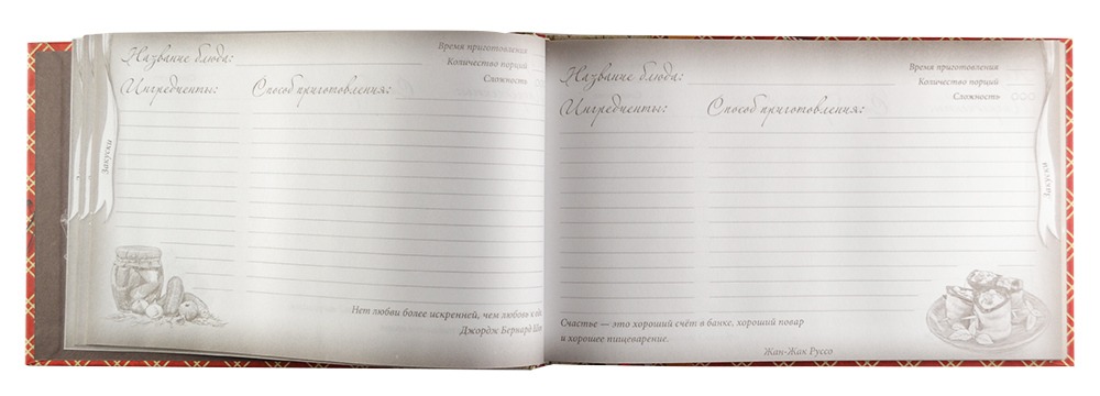 Качественная кулинарная книга для записи любимых рецептов станет Вашей лучшей помощницей. Все любимые первые блюда, салаты, десерты теперь все будут храниться в одном месте. Не нужно копаться в интернете в поиске ингридиентов, достаточно просто заглянуть в книгу, где найдете все необходимое для блюда.