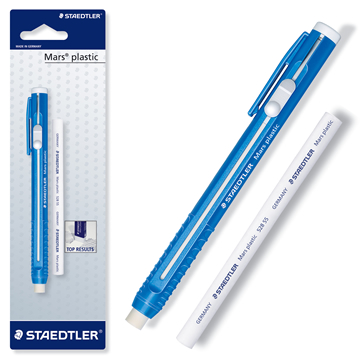 Ластик "Mars Plastic 528" в пластмассовом держателе + сменный ластик Staedtler