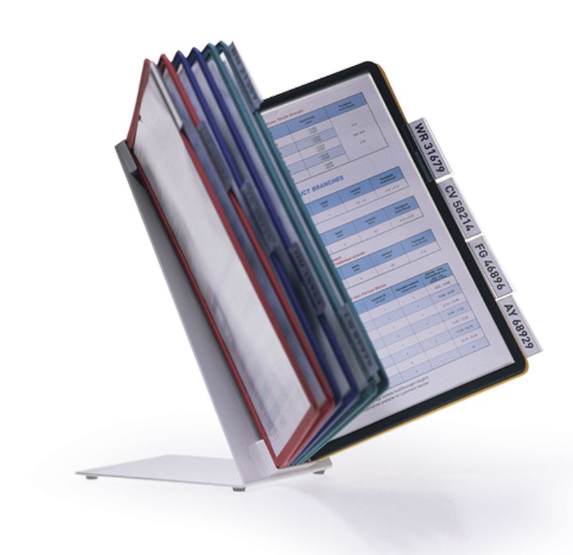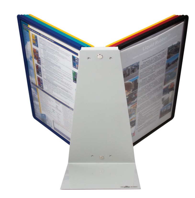 Дисплейная система VARIO с металлическим основанием и 10 демопанелями ассорти в комплекте. Предназначена для размещения информации, в том числе и в производственной зоне. Вмещает 20 листов. Комплектуется табуляторами для быстрого поиска.