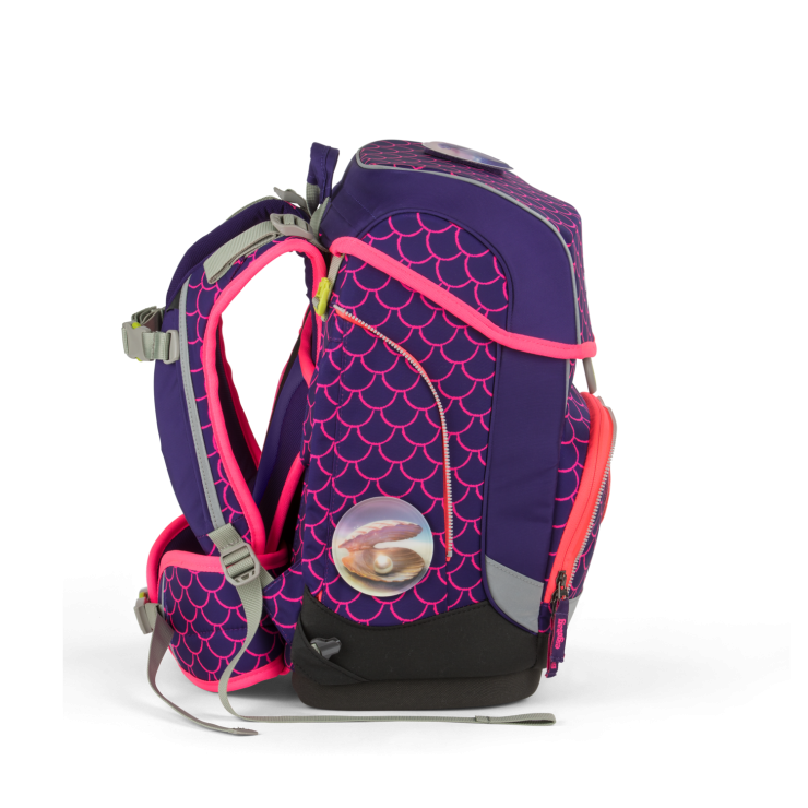 Регулируемый по росту нагрудный фиксатор. Широкий снимаемый набедренный ремень с мягкими вставками переносит часть нагрузки со спины на бедра. Мягкие и широкие наплечные лямки. Лифтовая система регулировки плечевых ремней позволяет оптимально подогнать рюкзак в соответствии с ростом ребенка от 100 до 150 см. Магнитный замок легко открывается одним пальцем и захлопывается автоматически. Вместительный наружный карман. На ранце есть светоотражающие элементы, повышающие безопасность на дороге.
