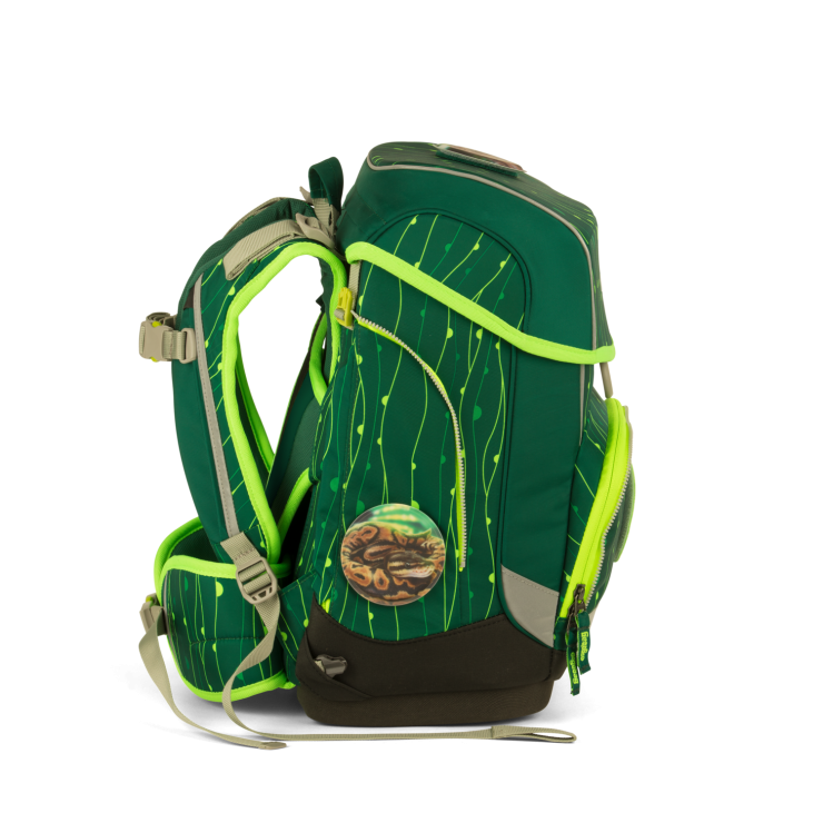 Регулируемый по росту нагрудный фиксатор. Широкий снимаемый набедренный ремень с мягкими вставками переносит часть нагрузки со спины на бедра. Мягкие и широкие наплечные лямки. Лифтовая система регулировки плечевых ремней позволяет оптимально подогнать рюкзак в соответствии с ростом ребенка от 100 до 150 см. Магнитный замок легко открывается одним пальцем и захлопывается автоматически. Вместительный наружный карман. На ранце есть светоотражающие элементы, повышающие безопасность на дороге.