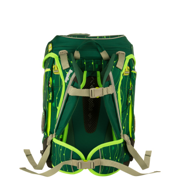 Школьный ранец совмещает классическую форму традиционных ранцев с инновационными принципами эргономии школьных рюкзаков Ergobag. Ранец разработан в соответствии с принципом оптимального распределения нагрузки уже многие годы применяющегося в профессиональном пешем туризме и альпинизме. Задняя часть ранца оснащена жесткой алюминиевой рамкой, четко повторяющей контуры позвоночника, и воздухопроницаемой мягкой прокладкой на спинке ранца. Дышащая анатомическая спинка.