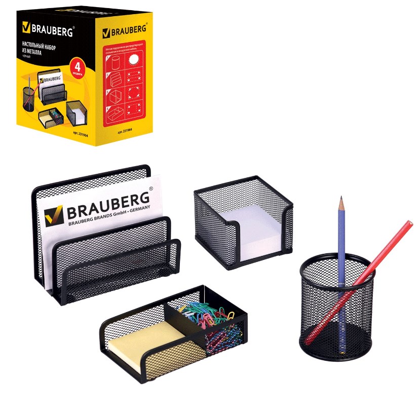 - В наборе: подставка органайзер, подставка для бумаг 3 секции, подставка под блок для записей, подставка для канцелярских мелочей