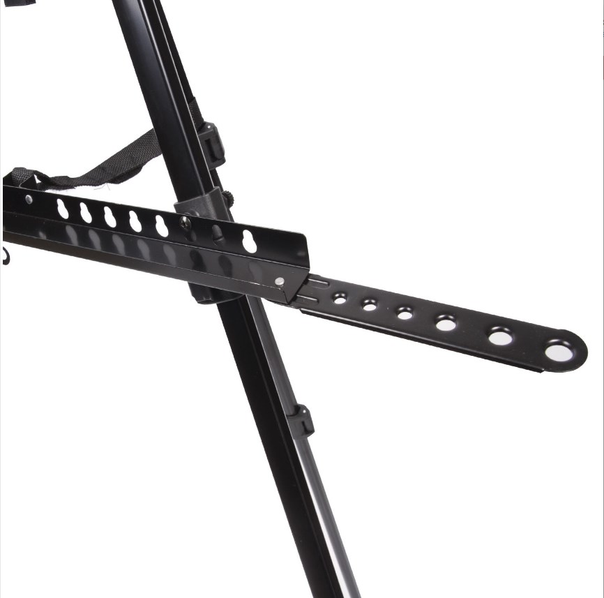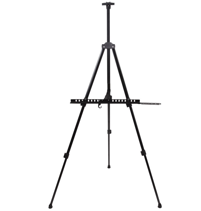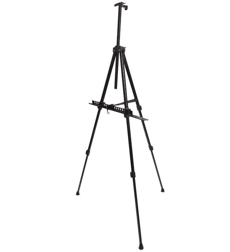 Мольберт оснащен держателем для кистей и крючком, на который можно подвесить груз для придания устойчивости. Выдвижные ножки оснащены зажимами-клипсами, как у современных фотоштативов, благодаря чему установка мольберта производится очень быстро. Мольберт-тренога выполнен из алюминия. Алюминий – устойчивый к коррозии металл, который обеспечивает легкость и прочность изделия.