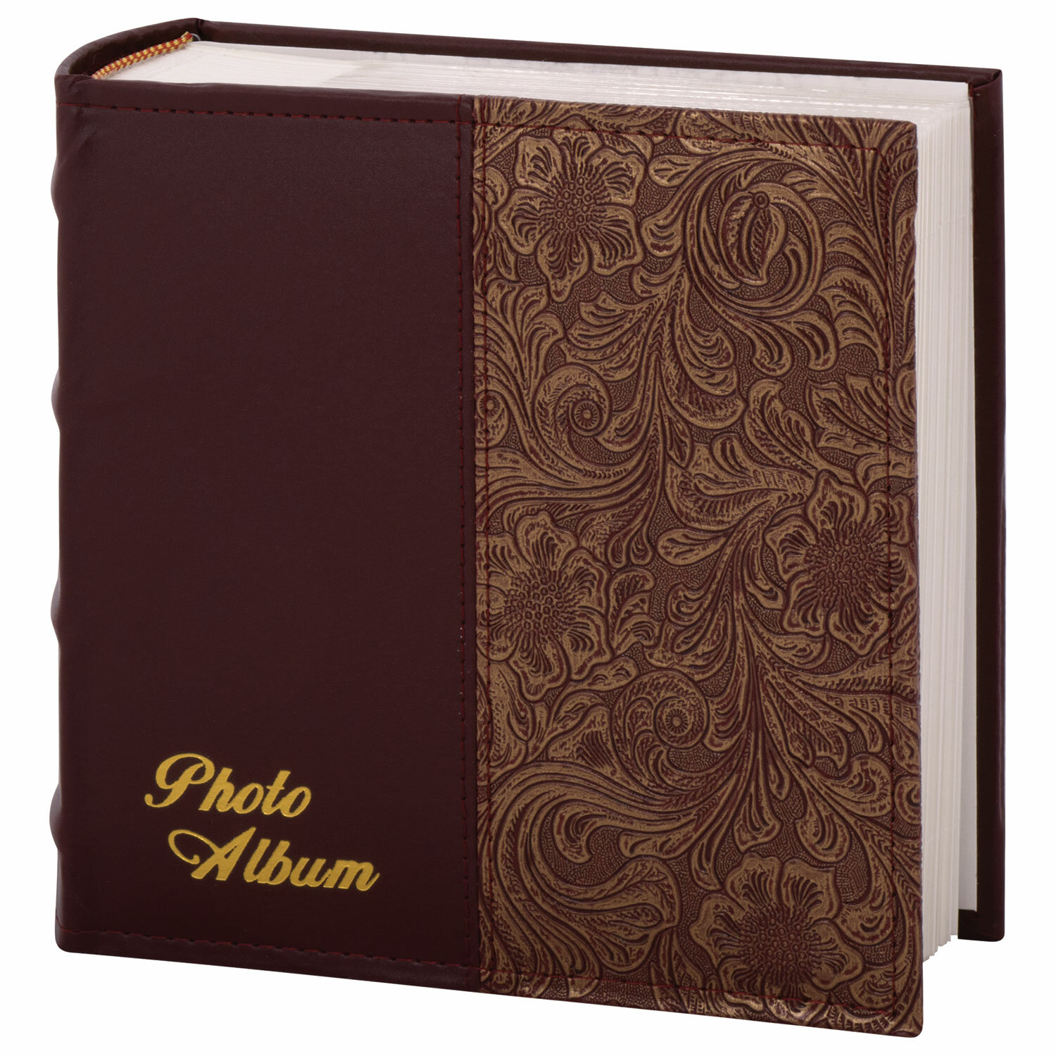 Фотоальбом BRAUBERG на 300 фотографий 10*15 см, обложка под кожу, бумажные страницы, бокс, бордо+бронза, 390681