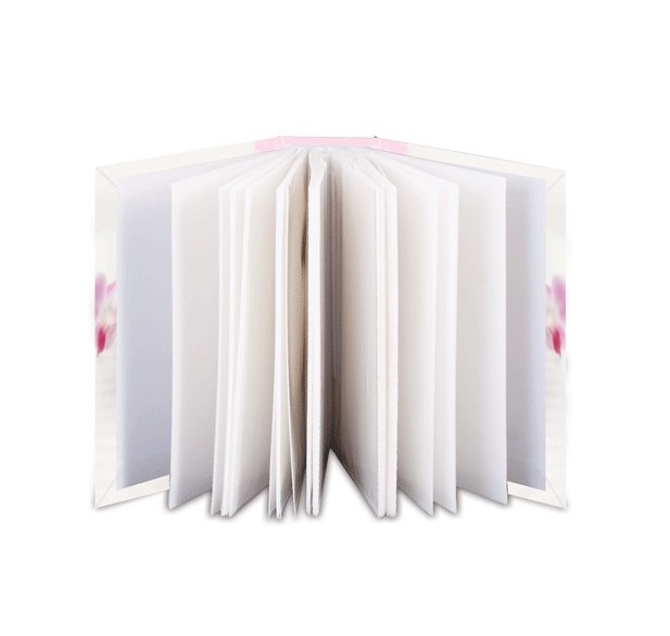 Фотоальбом с нежным дизайном обложки вмещает в себя 100 фотографий размером 10*15 см, каждая из которых помещается в отдельном прозрачном кармане. Страницы изготовлены из полипропилена и прочно прикреплены к корешку.