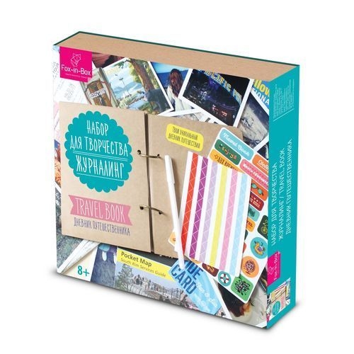 - В наборе: обложки из плотного картона, комплект страниц из крафт бумаги, металлические кольца и уголки, самоклеящиеся уголки для фото, ручка, тематические стикеры, инструкция.