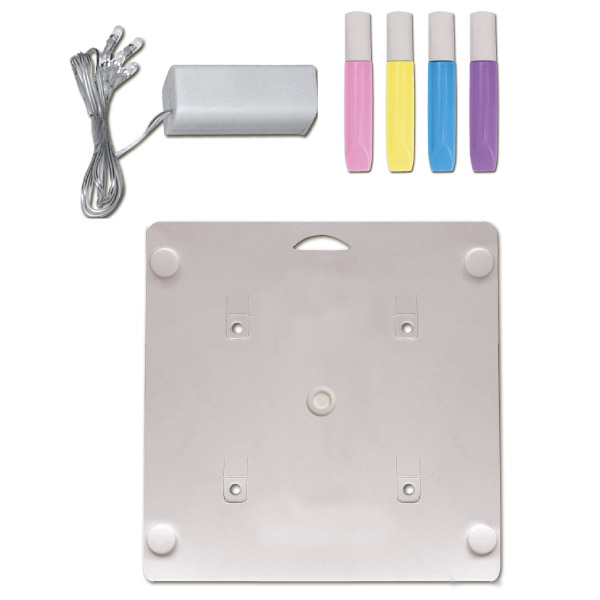 - В наборе: светодиодные лампочки, пластиковый абажур, витражные краски