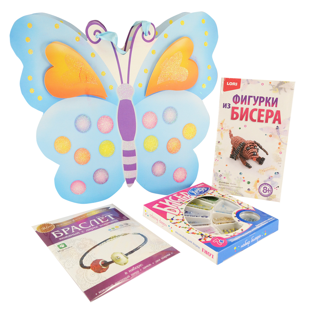 - В наборе: фигурки из бисера "Тузик", браслет своими руками, маленькая леди "Красотка", подарочный пакет