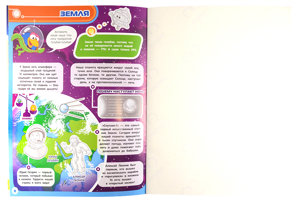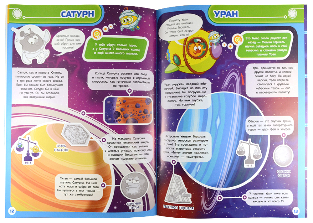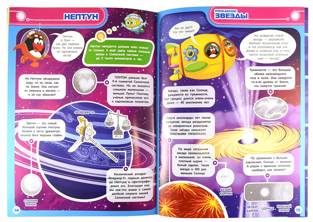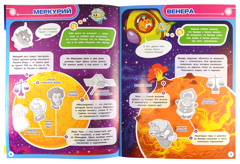 Этот яркий космический атлас «Смешарики» знакомит Вашего малыша с солнечной системой. Открыв его, малыш отправится в большое путешествие с любимыми героями, где его ждут открытия и приключения! В пути узнает, можно ли полежать на Солнышке, как устроить рок-концерт на Меркурии и на какой планете "живет" Баба-Яга. И еще много-много всего интересного.