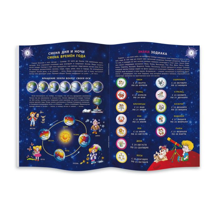 С помощью этого атласа Ваш ребенок познакомится со многими созвездиями и древними легендами и мифами, связанными с ними, а так же узнает о путеводных звездах, тысячи лет известных мореходам и путешественникам. Так же познакомится с планетами солнечной системы и узнает о способах наблюдения, изучения и освоения космоса.