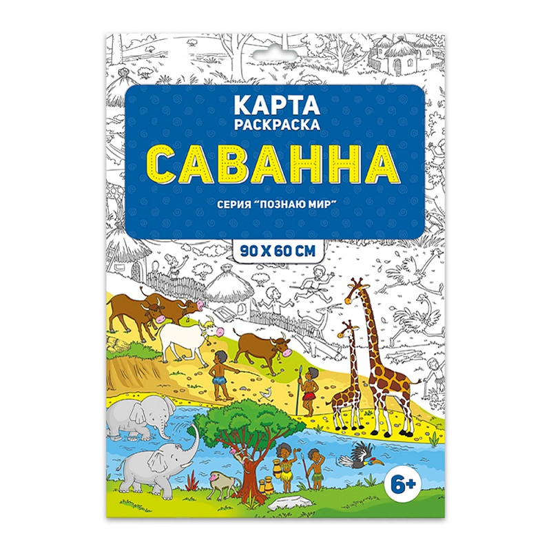 Карта-раскраска «Саванна» из серии «Познаю мир» не просто раскраска – это большое путешествие по просторам африканских степей, которые в сезон дождей покрываются зелёной свежей травой. Именно здесь обитают настоящие великаны: жирафы, слоны, бегемоты и носороги.