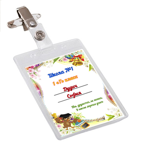 Именной бейдж с клипсой и булавкой. Карман из мягкого прочного пластика гарантирует долгий срок службы. Клипса и булавка обеспечивают удобное и надежное крепление бейджа на одежде.