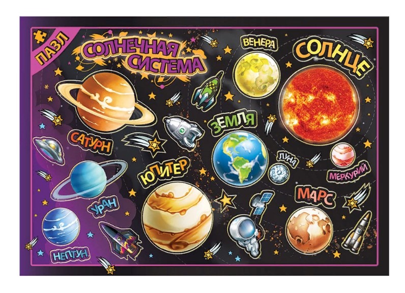 В этой головоломке вы не найдете стандартных элементов. Каждый фрагмент пазла Солнечной системы – это отдельная планета или ее название. Ваш ребенок сможет расположить планеты в зависимости их расстояния до Солнца, познакомиться с их объемами и внешним видом. Данный пазл – интересное учебное пособие для тех, кто только знакомится с астрономией. Вся нужная информация дается в игровой форме и запоминается без скуки. Собирая головоломки по кусочкам, дети учатся внимательности, развивают зрительную память и логику. Пазлы подойдут для игр, а также занятий с детьми дома или в начальных учебных учреждениях.