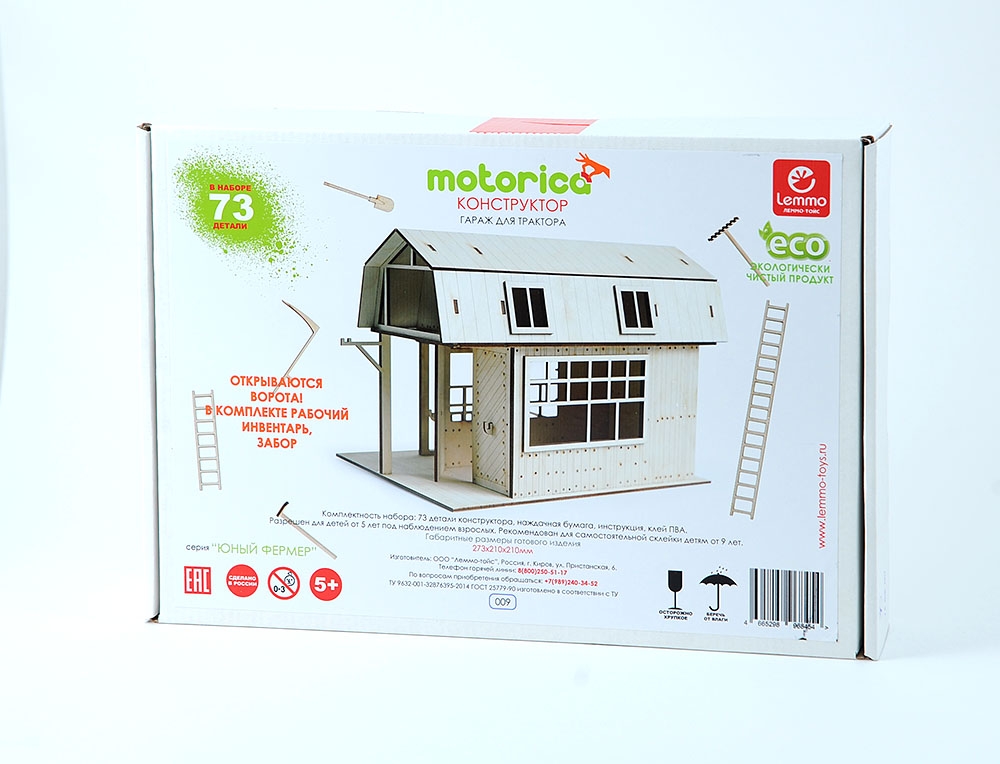 Набор для творчества. Конструктор 3D деревянный подвижный Lemmo "Гараж для трактора"