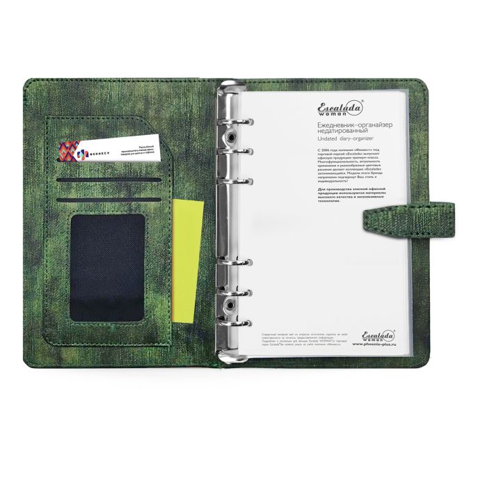 Ежедневник-органайзер недатированный, А6+, 160 листов, "Павлин зеленый" твёрдый переплёт, искусственная кожа