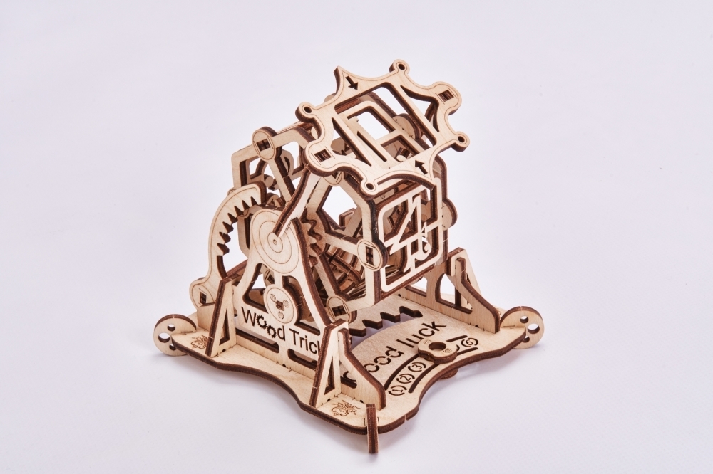 Модель «Колеса фортуны» полностью функциональна, просто потяните за рычаг, колесо начнёт вращаться, и надейтесь, что фортуна будет на вашей стороне и, когда оно остановится, на нём выпадет ваше счастливое число! Да, не так просто собрать сложный, плавно двигающийся механизм, так что это ещё один повод для вашей гордости!