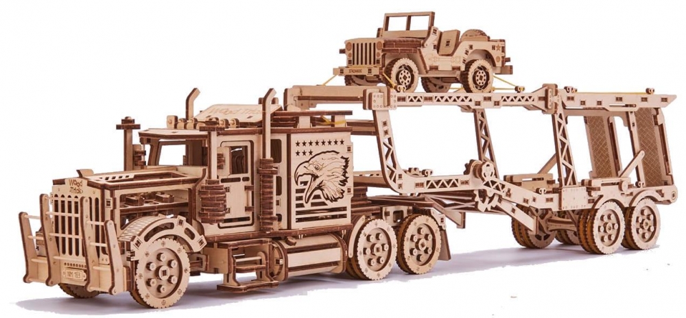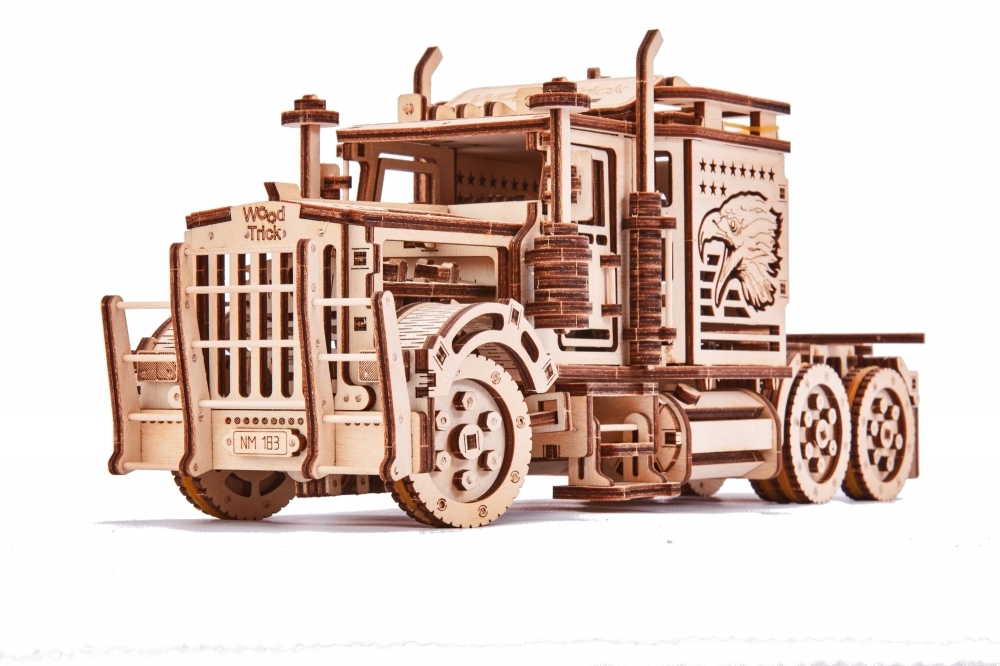 Конструктор "Биг Риг Автовоз" от Wood Trick является отличным подарком мужчине любого возраста. В собранном виде он будет дизайнерским украшением вашего интерьера. Заведите тягач с помощью специально встроенного механизма, и вы увидите с какой легкостью он преодолеет значительное расстояние по полу вашей гостиной.