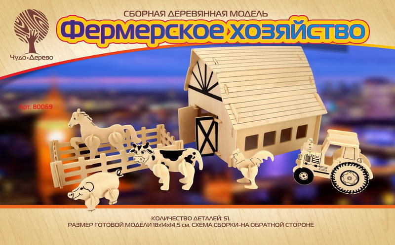 Сборная деревянная модель "Фермерское Хозяйство" Чудо-Дерево ЦБ-00012928