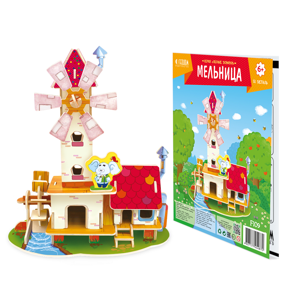 Объёмный пазл из серии "Лесные домики" выполнен из древесины. Сборка не требует дополнительных инструментов: детали просто выдавливаются из пластины и закрепляются в пазах.