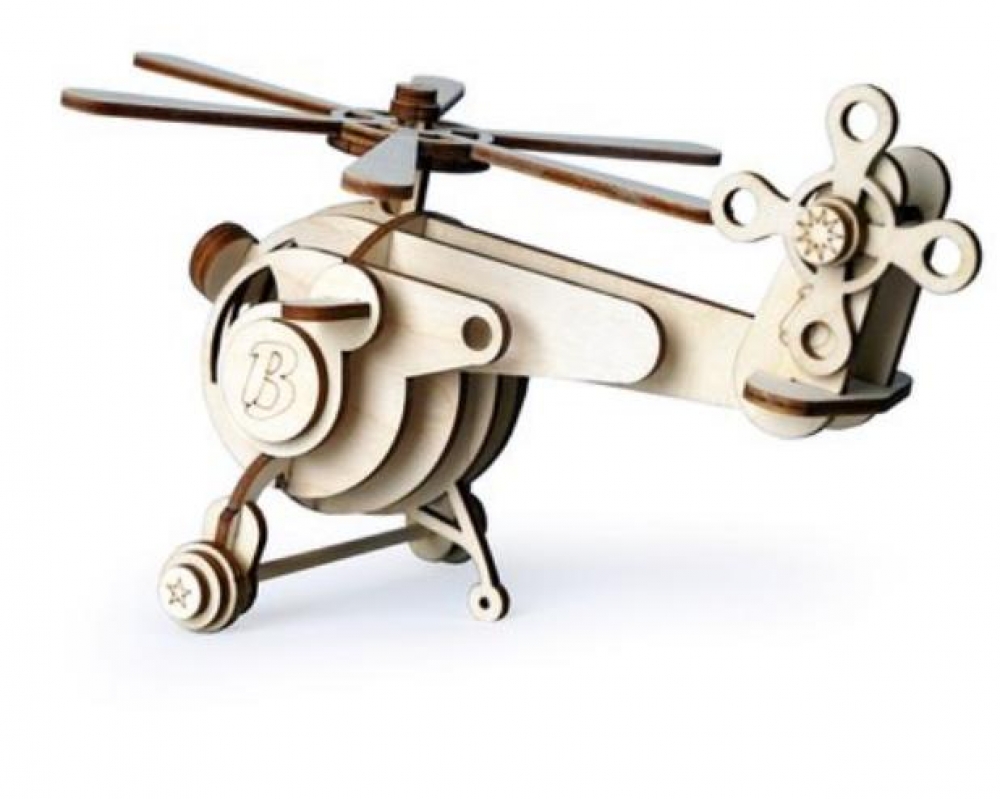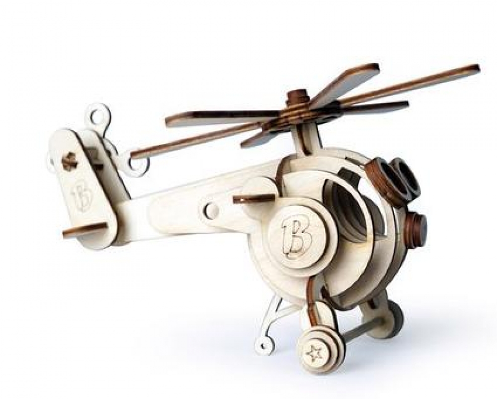 Набор для творчества. Конструктор 3D деревянный, подвижный Lemmo Вертолет "Витя"