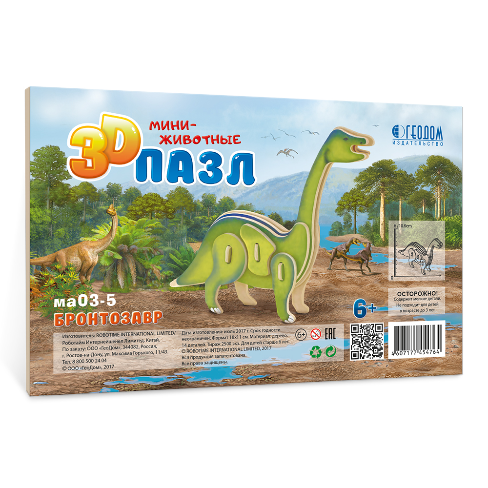 Деревянный 3D-пазл "Бронтозавр" Мини-животные*