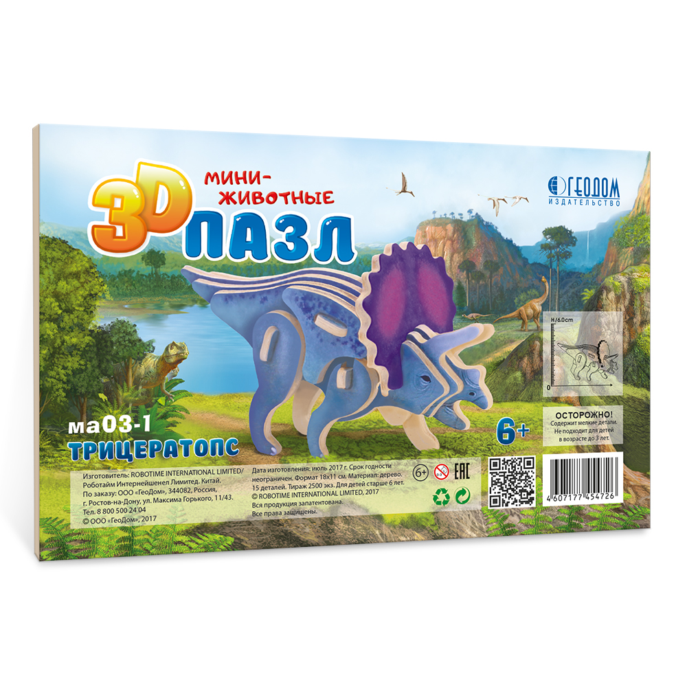 Деревянный 3D-пазл "Трицератопс" Мини-животные*