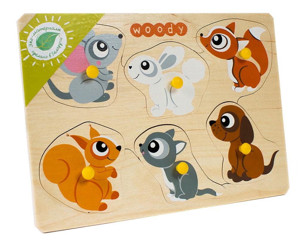 Главная идея набора – несложная головоломка для развития у детей логики и мышления. В комплекте вы найдете удобную деревянную рамку с фигурными углублениями и шесть деталей с изображением животных. Ребенку предстоит найти для каждой детали свое место в рамке. Такое занятие положительно влияет на зрительную память и мелкую моторику. Все компоненты набора сделаны из экологически чистой древесины.