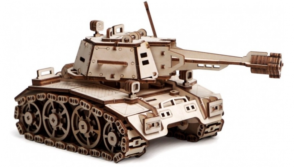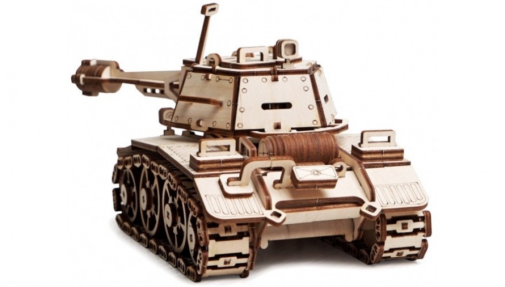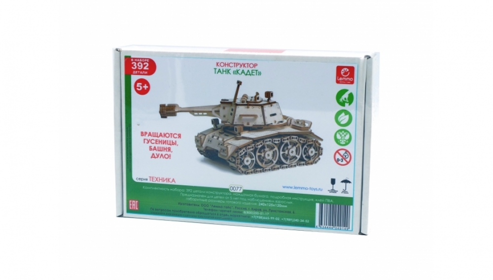 Набор для творчества. Конструктор 3D деревянный подвижный Lemmo Танк "Кадет"