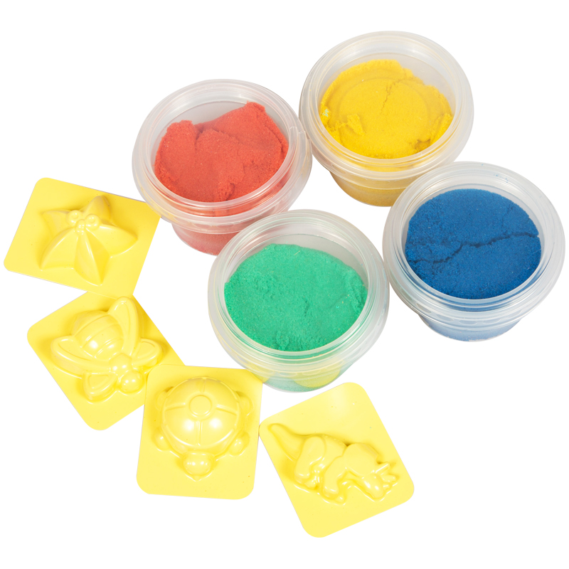 Магический песок не рассыпается и не высыхает, держит форму, лепится с помощью формочек или просто руками. С его помощью легко проявить фантазию и сделать яркие многоцветные или одноцветные фигурки. В комплекте есть формочки для лепки.