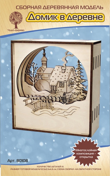 Набор для творчества. Деревянная сборная модель "Домик в деревне" многослойная композиция-открытка 80108*