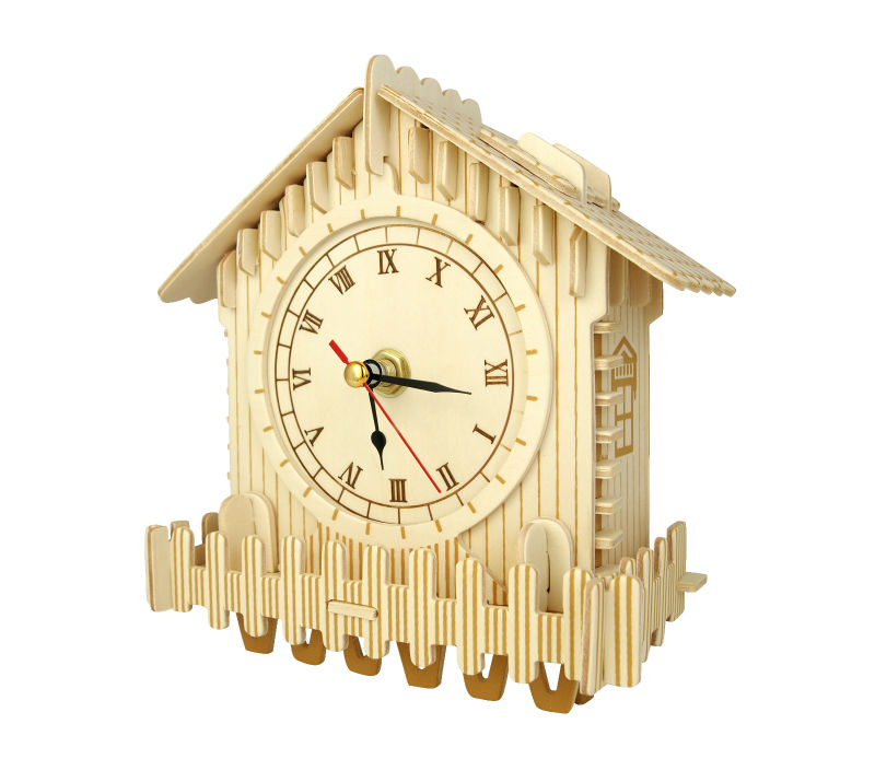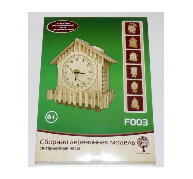 Перед вами сборная деревянная модель, которая при должном усердии превращается в полностью функционирующие часы, которые вы сможете как поставить на ровную поверхность, так и повесить на стену. Такой набор прекрасно подойдет как детям, так и взрослым, на сборку в среднем потребуется час времени.