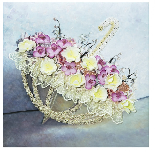 - Необычные эффекты благодаря использованию разнообразных материалов: мозаики, пайеток, бусин, бисера, атласных лент, фоамирана и других элементов декора.