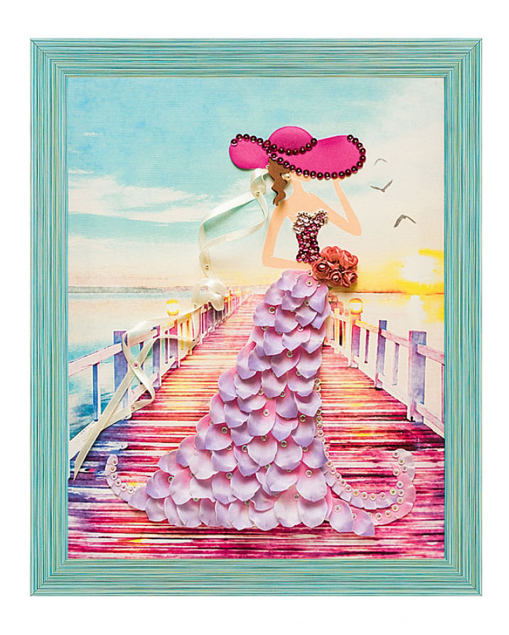 - В наборе: холст, схема сборки, пайетки, гвоздики-булавки листы FOM EVA, пастель, выкройка, атласная лента, бисер, бусины, бумажные цветы.