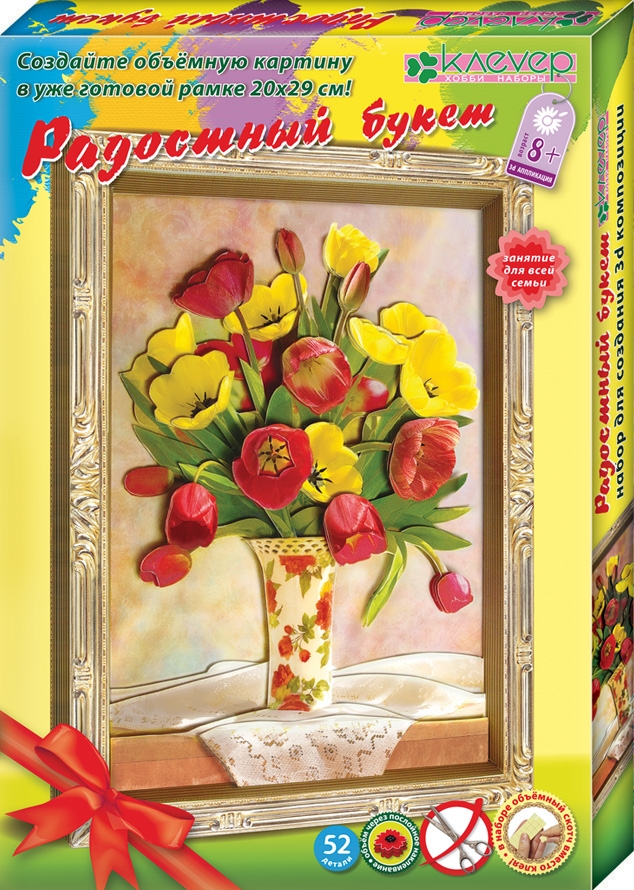 - В наборе: комплект готовых бумажных деталей, картонная картинка, рамка-коробка, комплект квадратов объёмного скотча