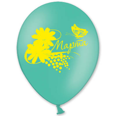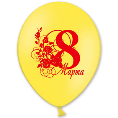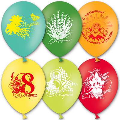Высококачественный шар из натурального латекса. Ассорти из 10-12 цветов (в случайном соотношении), одного типа - пастель - матовый оттенок цвета. Шары с двусторонним шелкографическим рисунком (6 дизайнов на тему "8 Марта" в пакете) с большим полем печати. Идеальный ассортимент для украшения праздника.