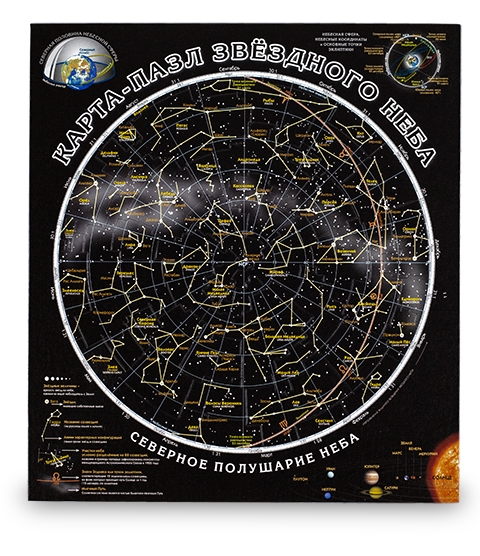 Этот пазл Северного полушария звездного неба просто создан для всех любителей астрономии. Соберите свою звездную карту из разрозненных элементов, и вы хорошо запомните расположение различных созвездий и их названия. Пазл не только помогает в учебе, но и позволяет отдохнуть и поиграть в хорошую настольную игру.