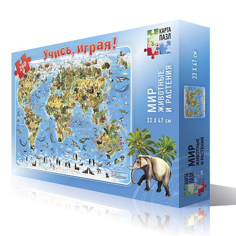 Карта-пазл "Животные и растения", 260 деталей