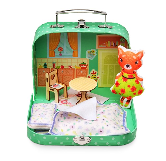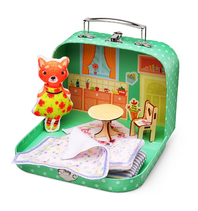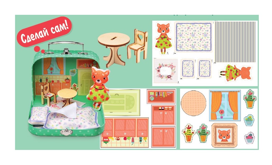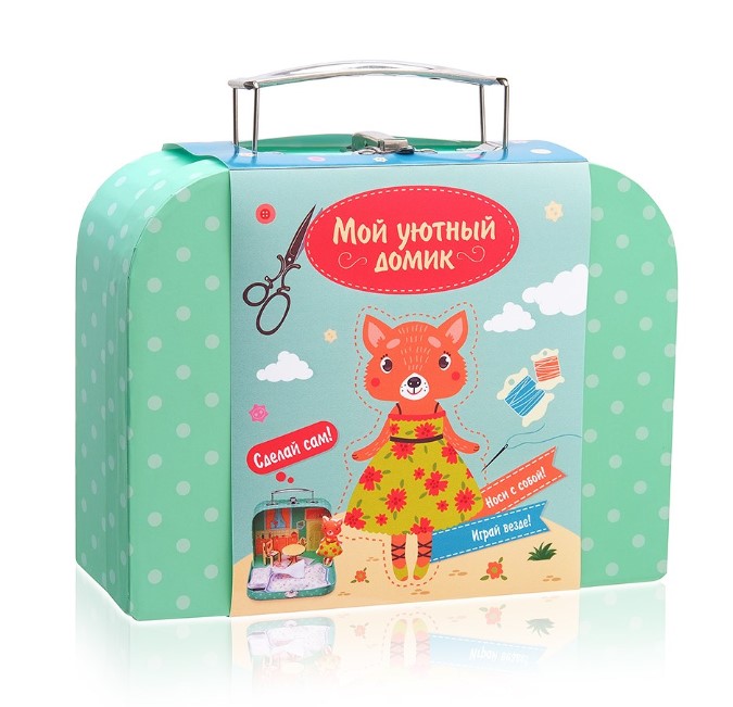 Набор продается в чемоданчике со стильным декором. Дети могут носить его в детский сад или в школу, брать с собой на прогулку или хранить внутри свои игрушки. Мы предлагаем еще одну творческую идею – сделать в чемоданчике дом для сшитой куклы. В комплекте есть детали деревянной мебели, которую можно собрать без клея и гвоздей, а также наклейки для украшения интерьера. Вы можете добавить в свой домик любые предметы декора и сделать его по-настоящему неповторимым.