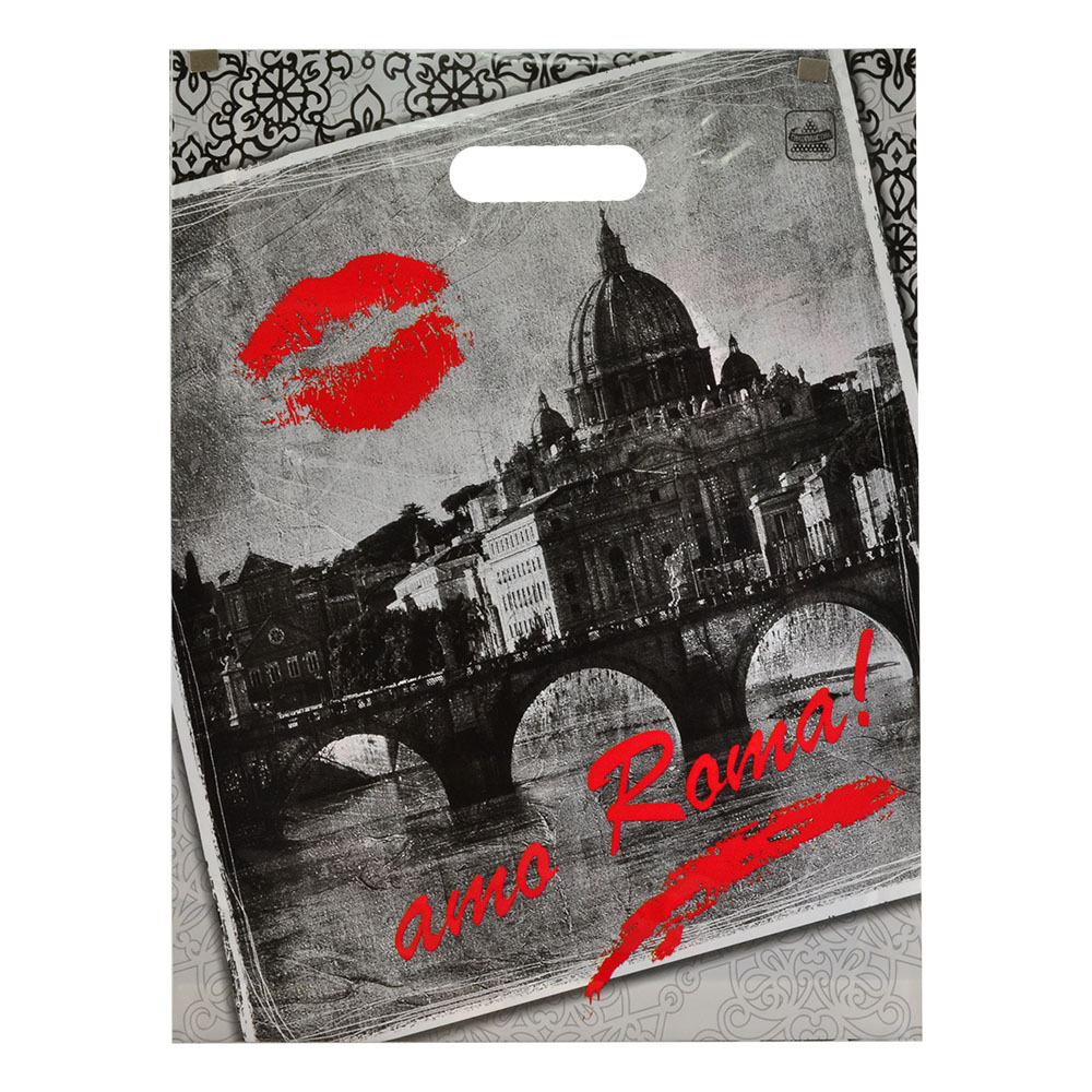 Красивый подарочный пакет с вырубными ручками. Пакет сделан из полиэтилена с ярким принтом.