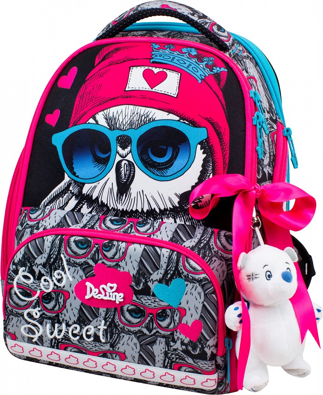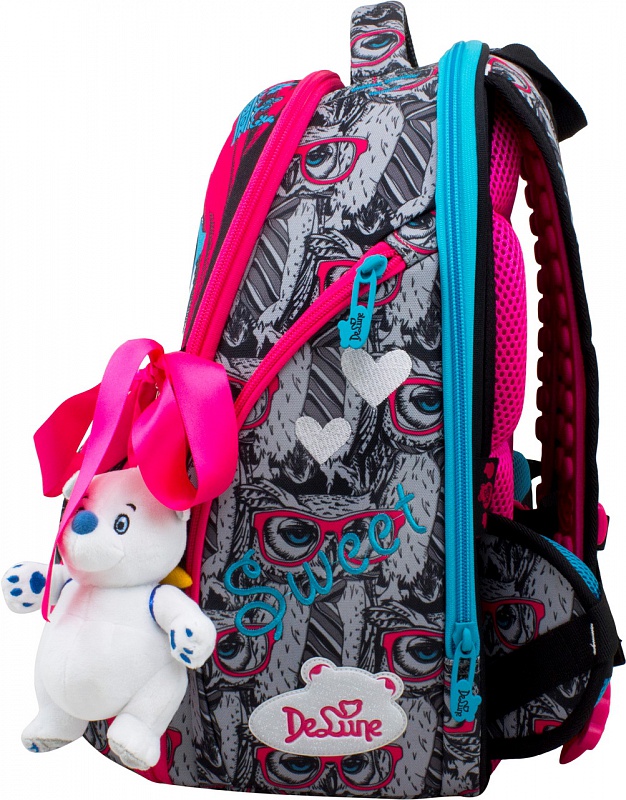 Ранец школьный с ортопедической спиной De Lune 10-003 + мешок + мягкий пенал + мишка + ленточка