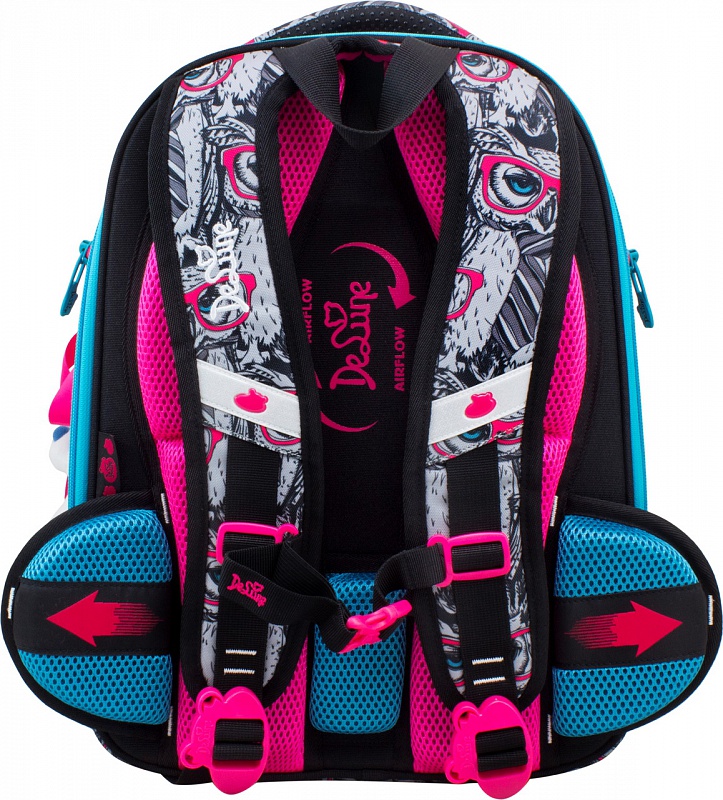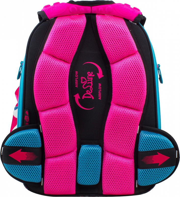 Эргономичная спинка ранца, разработана по новым технологиям, учитывающие особенности анатомии ребенка. Позвоночник защищен специально сконструированной спинкой с саморегулирующей боковой поддержкой, которая при ходьбе не позволяет смещаться ранцу в стороны, надежно фиксируя на пояснице, и подходит ребенку любой комплекции. Надежная фиксация делает ношение максимально удобным.