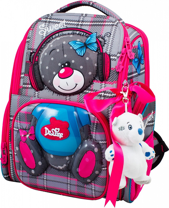 Ранец школьный с ортопедической спиной DeLune 11-026 + мешок + мишка + ленточка