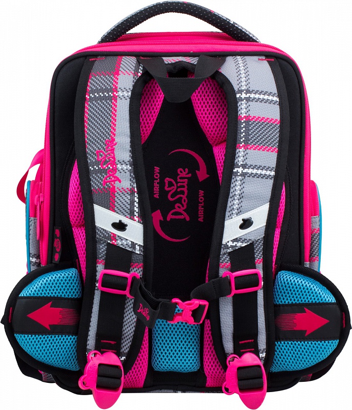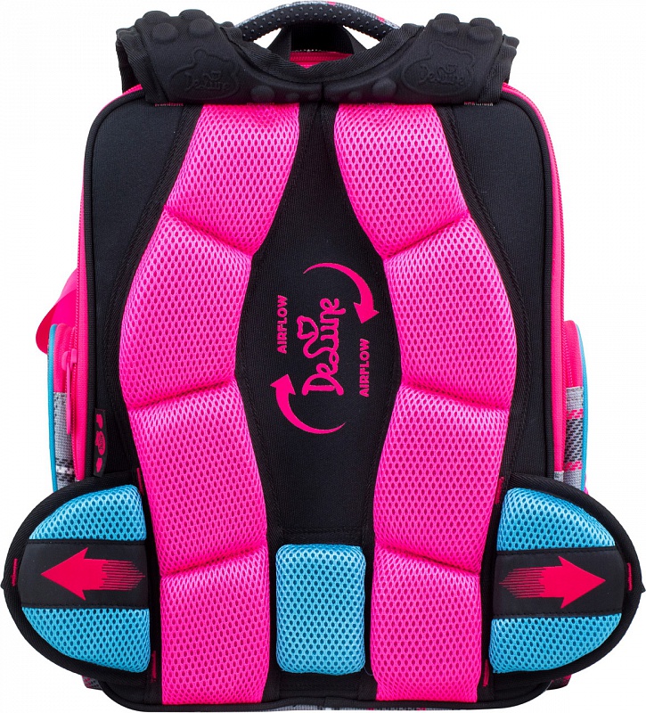Эргономичная спинка ранца, разработана по новым технологиям, учитывающие особенности анатомии ребенка. Позвоночник защищен специально сконструированной спинкой с саморегулирующей боковой поддержкой, которая при ходьбе не позволяет смещаться ранцу в стороны, надежно фиксируя на пояснице, и подходит ребенку любой комплекции. Надежная фиксация делает ношение максимально удобным.