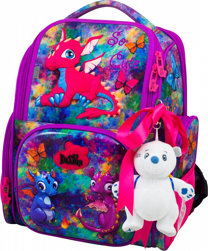 Ранец школьный, украшенный объёмной 3D картинкой - это совершенно уникальное решение, сочетающее яркую, большую картинку и ощущение что понравившийся мишка или котенок настолько реальны (благодаря 3D технологии), что они могут «ожить», а благодаря новой технологии покрытия мы добились самых ярких и сочных цветов. Мы максимум хотим сохранить для детей ощущения сказки и волшебства и окунуть их в мир чудес. Проработанные детали, украшения в виде шелковой вышивки и аппликации, помогают нам этого достичь.